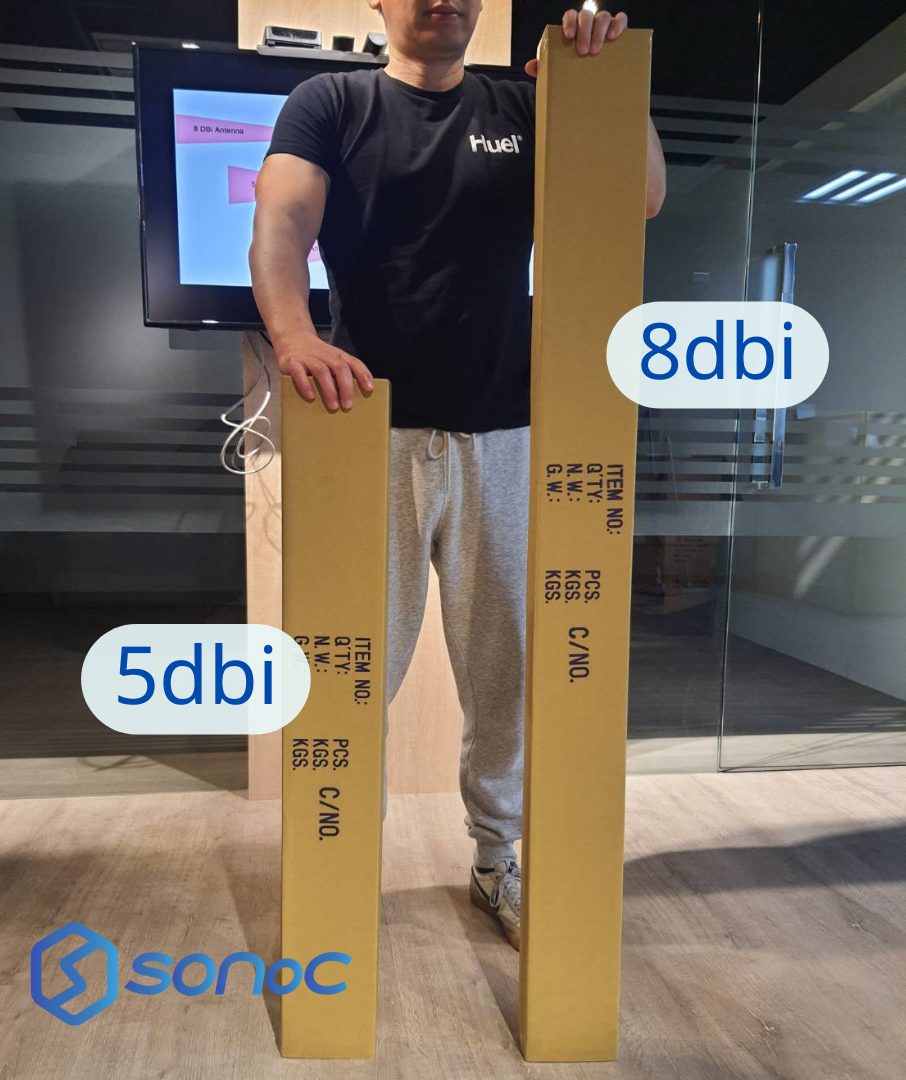 8dBi: Without obstructions, our antenna is designed to travel up to 12km. The radiation pattern is spear in shape with its design. This is more suitable for witnesses further away.